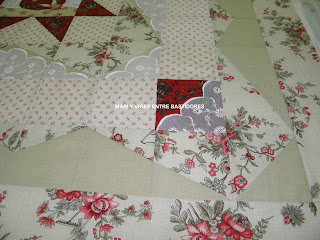 No soy muy dada a poner encajes en el patchwork, pero como en todo es bueno evolucionar, y un buen día te dices, ¿por qué no? Y si además se presenta la ocasión, como en este caso, excusa perfecta.